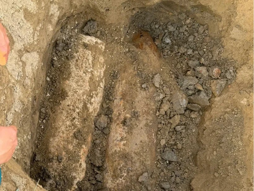 Cơ quan chức năng đã thông báo đến toàn thể nhân dân, di dời những gia đình xung quanh, cắt cử người trông coi khu vực phát hiện 2 quả bom để bảo đảm an toàn, tính mạng cho người dân.