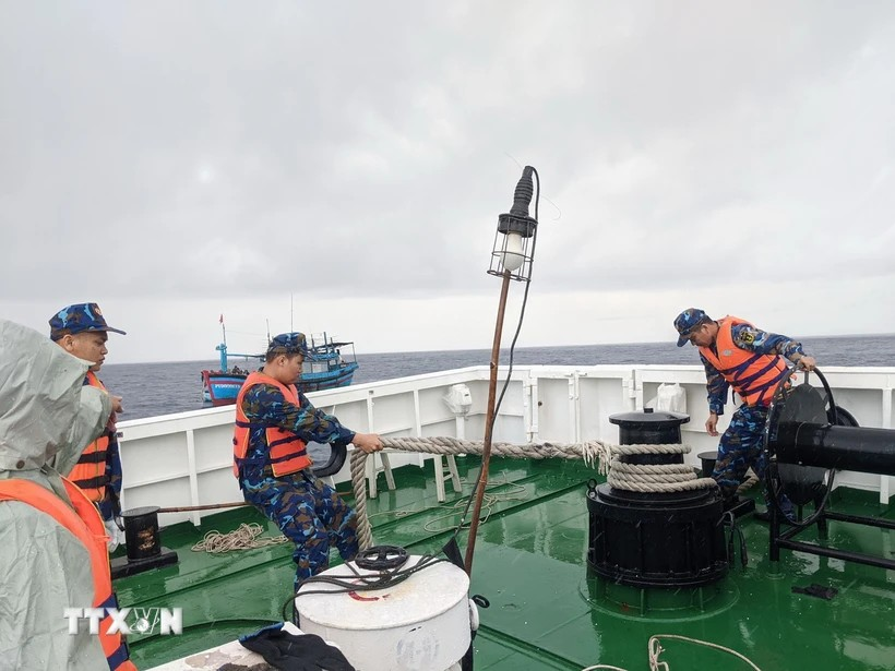 Lai kéo tàu cá ngư dân Phú Yên bị gãy trục chân vịt về đảo Song Tử Tây