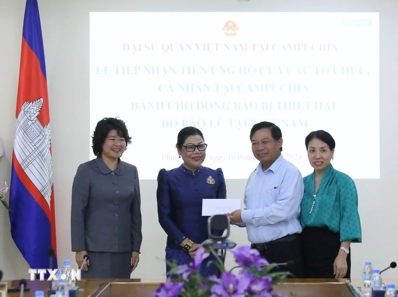 Đại sứ Nguyễn Huy Tăng đã tiếp nhận số tiền 1.700 USD từ bà Chea Sam Eng và bà Kim Neng, đại diện cho thế hệ sinh viên là con em lãnh đạo cấp cao Campuchia từng học tập tại Việt Nam.