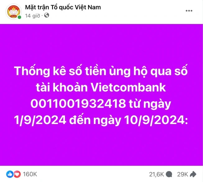 Sẽ tiếp tục công bố sao kê danh sách ủng hộ đồng bào bị thiệt hại do bão số 3