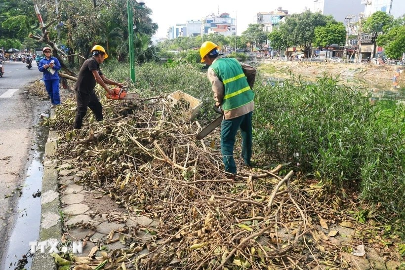 Đến sáng 13/9, việc giải tỏa cây xanh đổ, gãy đã cơ bản hoàn thành, đảm bảo giao thông. Hiện các đơn vị đang tập trung trồng dựng lại cây kịp thời và tiến hành vận chuyển củi gỗ về bãi tập kết.