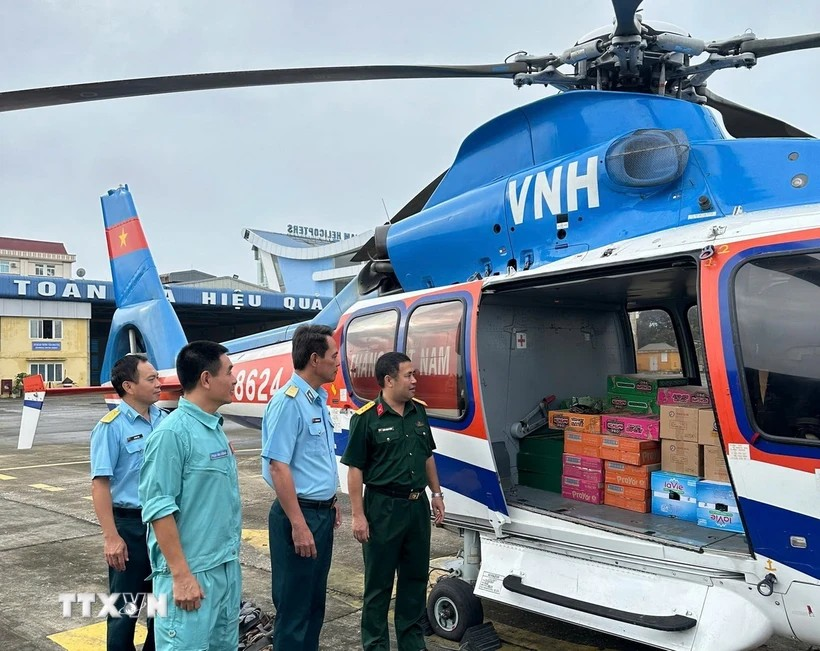 Không quân điều trực thăng bay Mi-171 bay cứu trợ đồng bào vùng lũ