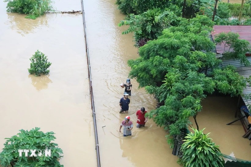 Đến 13 giờ 30, các khu vực ven sông Hồng thuộc thành phố Yên Bái đang bị ngập sâu trong nước, 3.500 hộ gia đình phải tạm thời di dời.