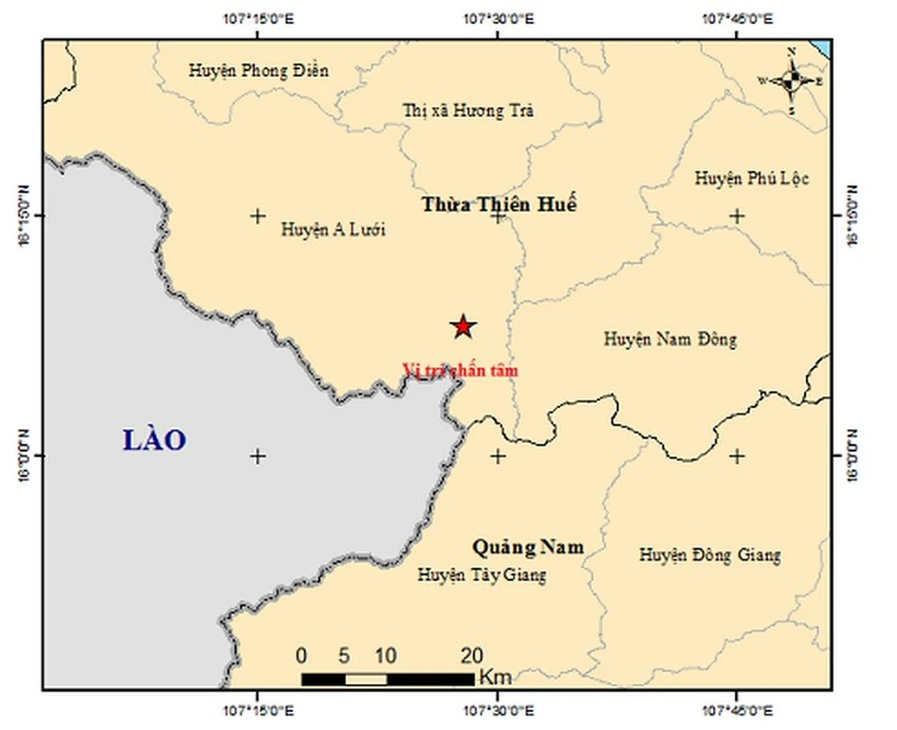 Theo Viện Vật lý Địa cầu, khoảng 6 giờ 40 phút ngày 8/9, một trận động đất có độ lớn 3,3 xảy ra tại huyện A Lưới, vị trí có tọa độ 16.136 độ vĩ Bắc, 107.465 độ kinh Đông, độ sâu chấn tiêu khoảng 8km.