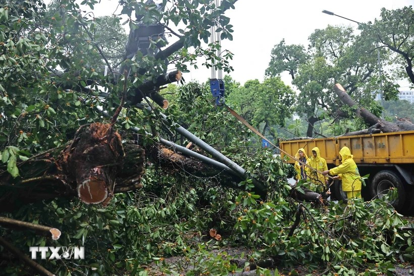 Hà Nội tập trung lực lượng thu dọn, khôi phục cây xanh gãy đổ do bão số 3