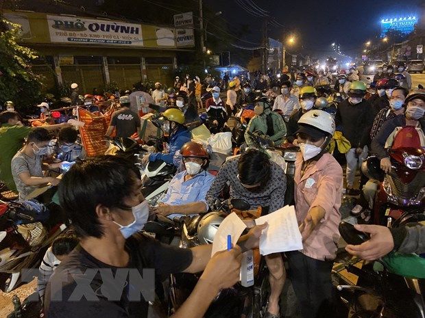 Từ tối 30/9 đến rạng sáng 1/10, hàng nghìn người dân đã đi xe máy tập trung về điểm chốt khu vực giáp ranh với TP.HCM và Long An (thị trấn Tân Túc, huyện Bình Chánh) tuyến Quốc lộ 1A để về quê.