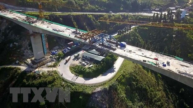 Hợp long cầu Móng Sến trên đường nối cao tốc Nội Bài-Lào Cai đến Sa Pa