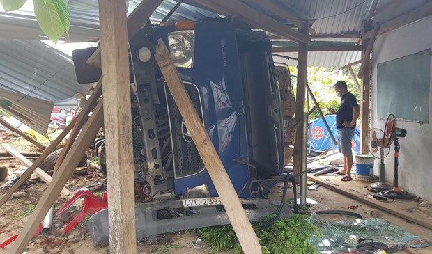 Chiếc xe tải mất lái, lao thẳng vào và làm sập chốt kiểm soát dịch COVID-19 bên đường (hướng từ tỉnh Đắk Nông đi Thành phố Hồ Chí Minh), đã khiến một đại úy công an bị thương.