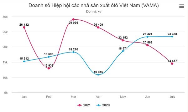 Hãng bán nhiều xe nhất thị trường TC Motor hay các thành viên VAMA đều giảm mạnh doanh số, riêng VinFast tăng trưởng trong tháng 7/2021.