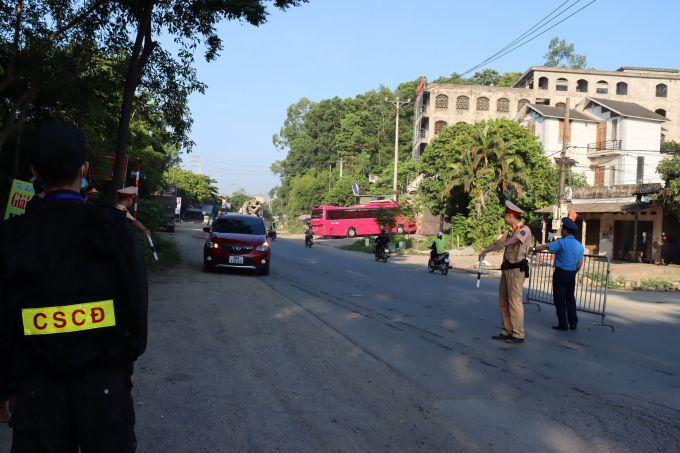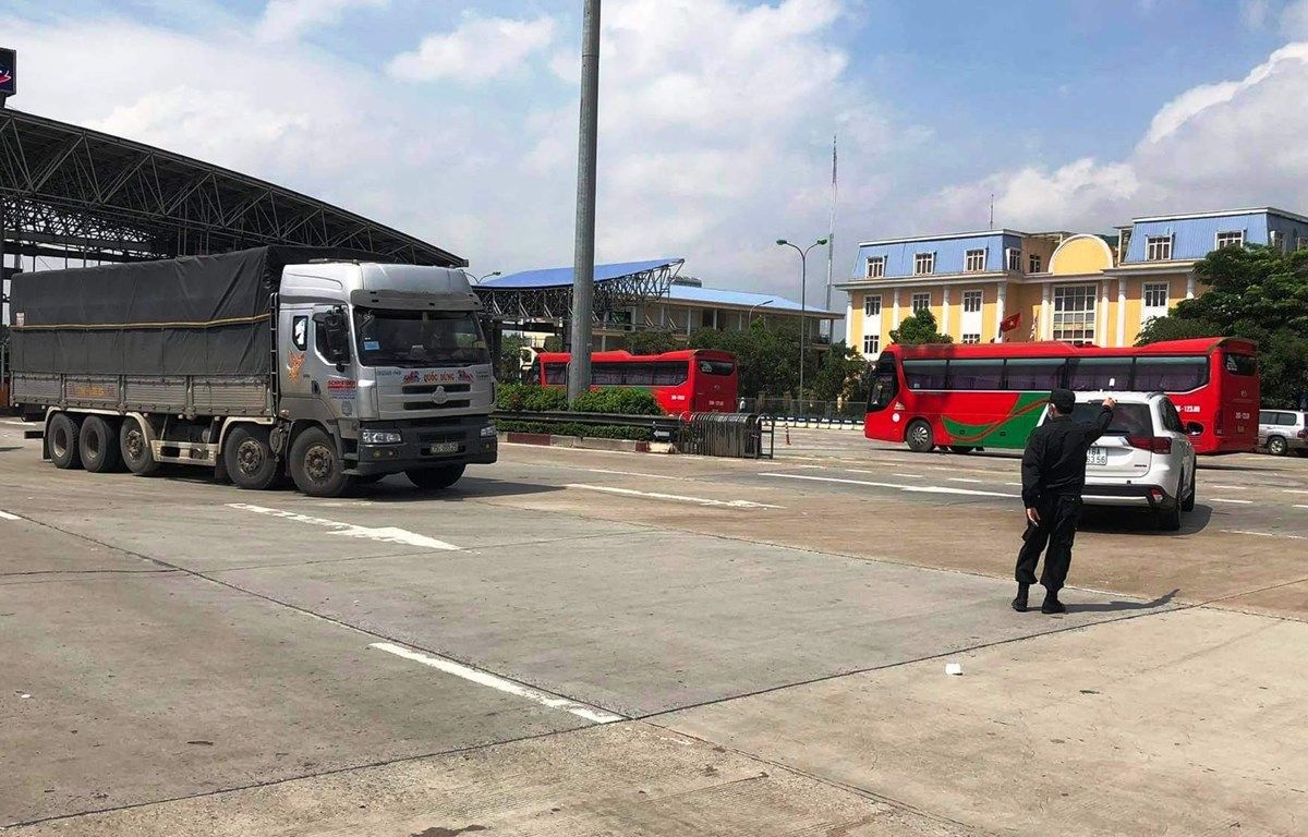 Phương tiện vận chuyển hàng hóa, công nhân, chuyên gia được lưu thông thông suốt 24/24 giờ qua "luồng xanh" quốc gia kết nối với thành phố Hà Nội qua các chốt kiểm dịch.