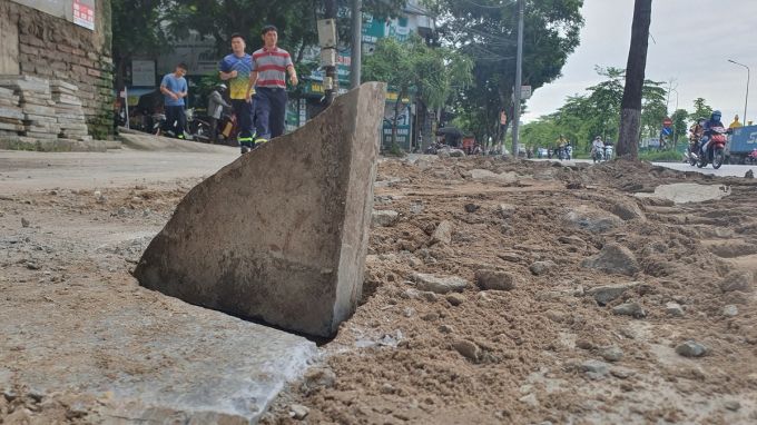 Nửa đêm vỉa hè quận Hoàng Mai vừa lát đá tự nhiên bị 'băm nát'