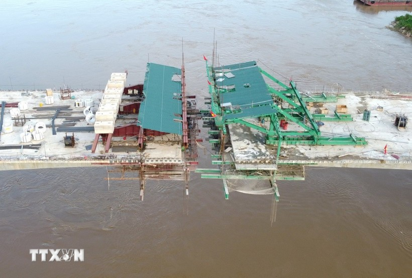 Bộ đội công binh Trường Sơn cùng các lực lượng của Ban Quản lý dự án Thăng Long đang gấp rút chạy đua với thời gian, thực hiện chiến dịch cao điểm nhằm hợp long cầu Phong Châu mới vào ngày 28/8.