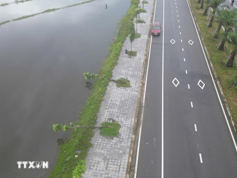 Sau cơn bão số 10, có hơn 120 cây xanh (trên tổng số gần 800 cây xanh trồng ở lề đường) trên tuyến đường giao thông Phú Mỹ-Thuận An, thành phố Huế bị bật gốc, ngã đổ.