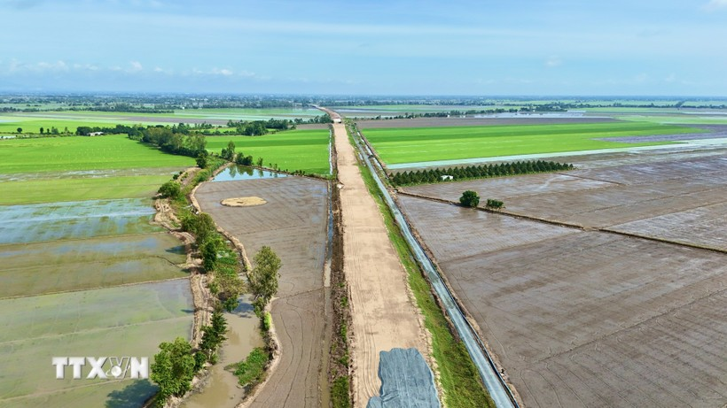 Dự án đường bộ cao tốc Châu Đốc-Cần Thơ-Sóc Trăng đoạn qua địa bàn tỉnh An Giang đang được các nhà thầu tập trung tối đa nhân lực, thiết bị, triển khai thi công "3 ca, 4 kíp" để bảo đảm tiến độ.