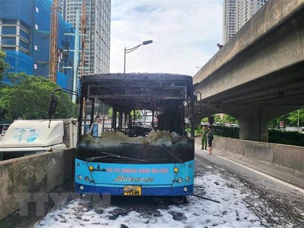 Chiếc xe ôtô buýt bốc cháy rất nhanh, tuy nhiên lực lượng chức năng đã có mặt, kịp thời xử lý, dập tắt đám cháy đồng thời hướng dẫn giao thông, không để xảy ra ùn tắc.