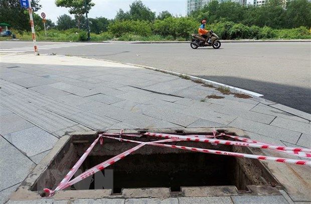 Các nắp lưới chắn rác thoát nước, nắp gang hạ tầng kỹ thuật trên vỉa hè, dưới lòng đường trên các tuyến đường trong Khu đô thị mới Thủ Thiêm liên tục bị mất cắp, có nguy cơ gây mất an toàn giao thông.