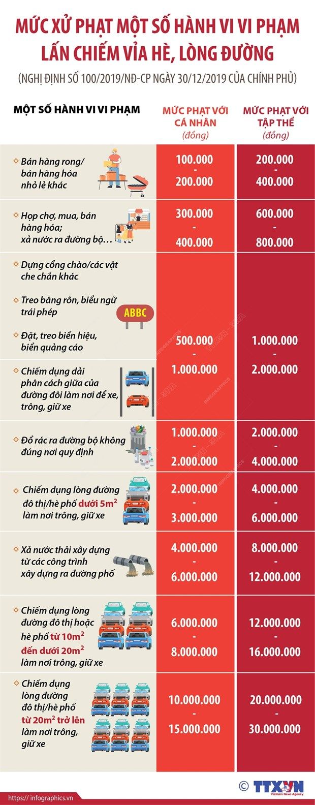 Mức xử phạt một số hành vi vi phạm lấn chiếm vỉa hè, lòng đường