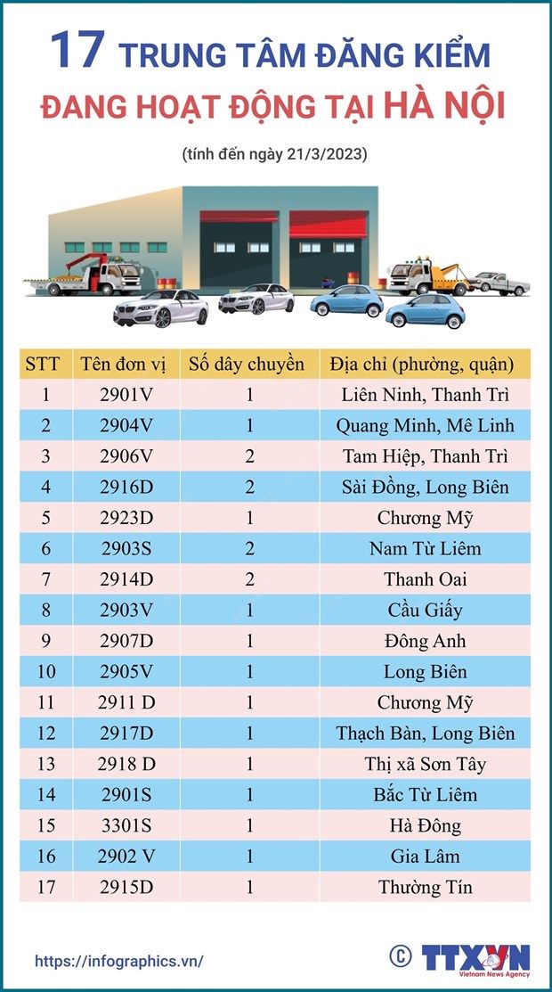 [Infographics] 17 trung tâm đăng kiểm đang hoạt động tại Hà Hội