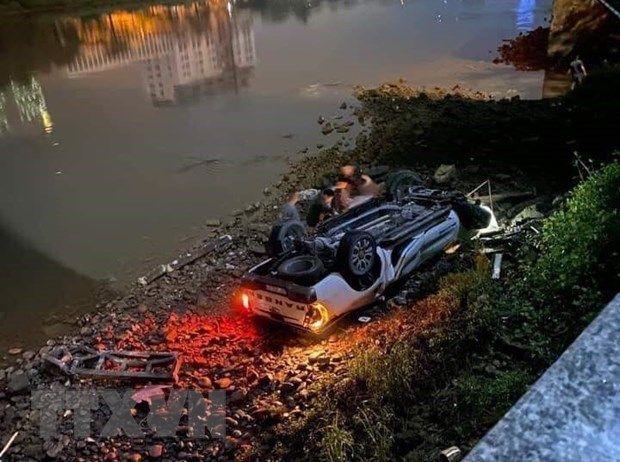 Xe ôtô bán tải 29C-994.61 nhãn hiệu Ford Ranger mất lái, lao ra bên ngoài hành lang đường bộ phía bên trái, sau đó đâm đổ lan can thành cầu và rơi xuống sông Ka Long trong tư thế lật ngửa.