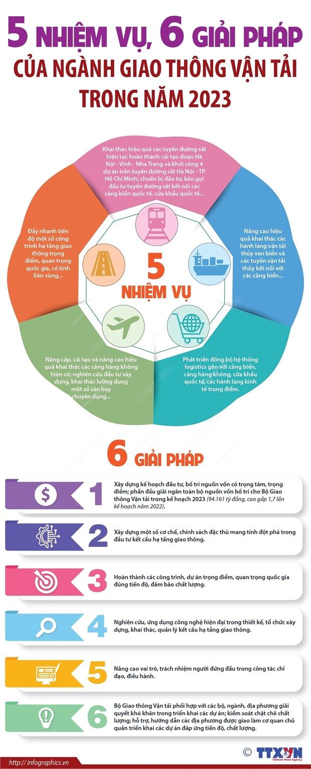 Bộ trưởng Bộ Giao thông vận tải Nguyễn Văn Thắng đưa ra 5 nhiệm vụ, 6 giải pháp để đưa ngành giao thông vận tải hoàn thành các nhiệm vụ được giao trong năm 2023.