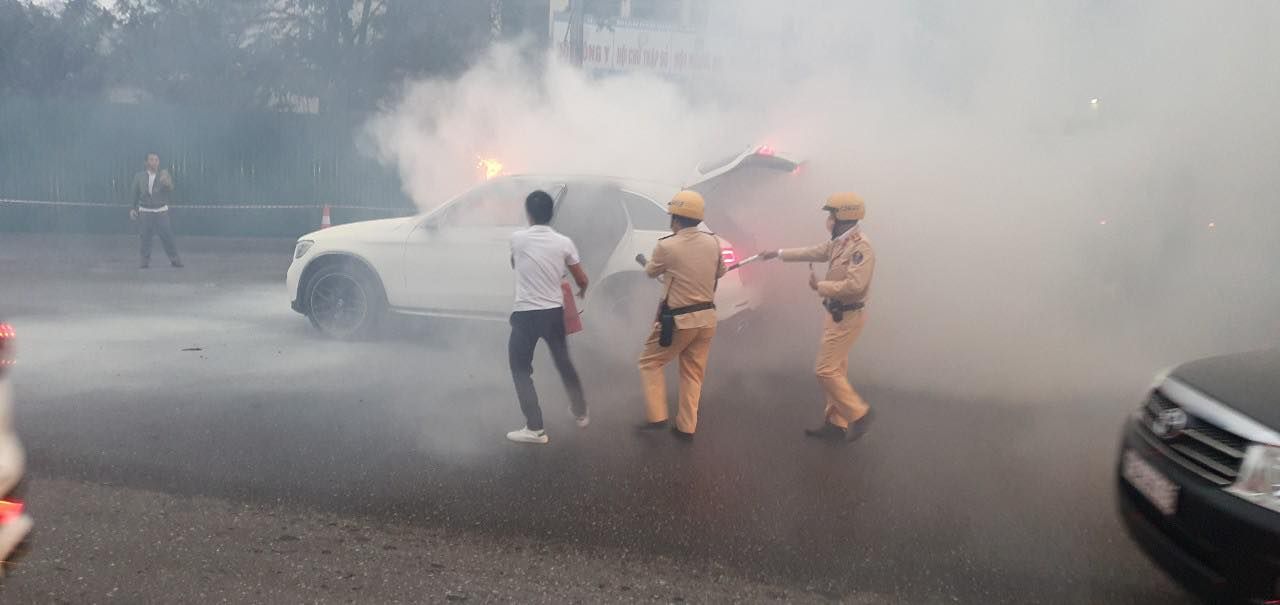 Hà Nội: CSGT xuất hiện kịp thời, ngăn ngọn lửa thiêu rụi xe ôtô đang lưu thông
