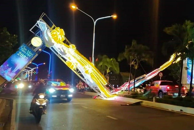 Một cổng chào trang trí chúc mừng năm mới xuân Quý Mão 2023 ở TP Nha Trang, tỉnh Khánh Hòa bất ngờ gãy sập, khiến nhiều người đi đường hoảng loạn.