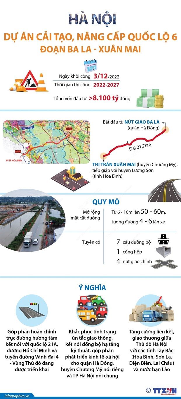 Dự án cải tạo, nâng cấp Quốc lộ 6, đoạn Ba La-Xuân Mai hoàn thành sẽ khắc phục tình trạng ùn tắc, kết nối đồng bộ hạ tầng kỹ thuật, góp phần phát triển kinh tế-xã hội huyện Chương Mỹ, quận Hà Đông.
