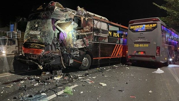 Ngày 21/10 tại km 1667+700 quốc lộ 1A thuộc địa phận thôn Bình Sơn, xã Bình Tân (huyện Bắc Bình, Bình Thuận) xảy ra vụ tai nạn khiến giao thông ùn tắc cục bộ do 4 xe khách nằm chắn hết các làn đường.