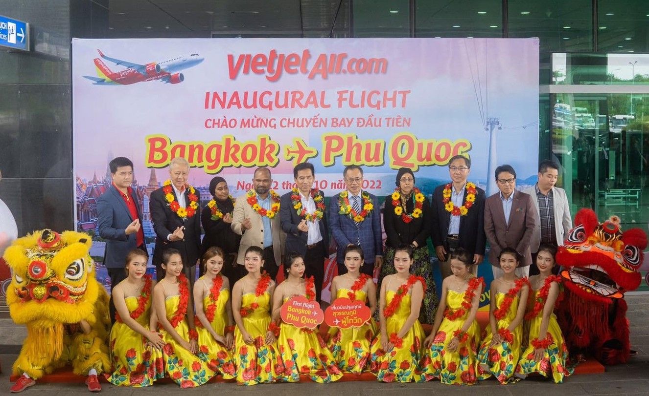 (Vietjet, Phú Quốc, ngày 12/10/2022) – Vietjet hôm nay chính thức khai trương đường bay kết nối trực tiếp đảo ngọc Phú Quốc với thủ đô Băng Cốc của Thái Lan, tiếp tục đem đến thêm cơ hội đi lại tiết kiệm và linh hoạt cho hành khách, thúc đẩy phục hồi du lịch khi các rào cản đi lại đã được gỡ bỏ.