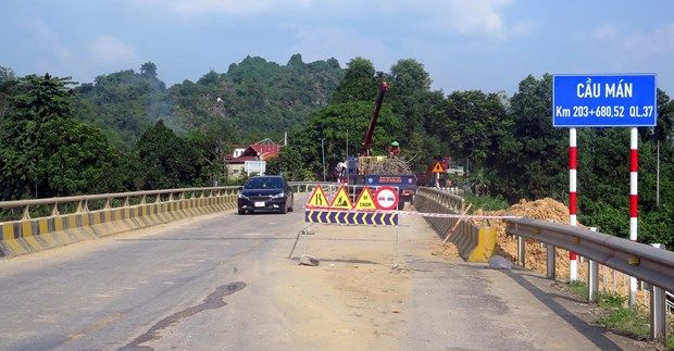 Để đảm bảo an toàn toàn cho người và phương tiện tham gia giao thông trên Quốc lộ 37, các cơ quan chức năng tỉnh Tuyên Quang đang khẩn trương khắc phục sự cố sạt lở cầu Mán, tại Km203+680, Quốc lộ 37.