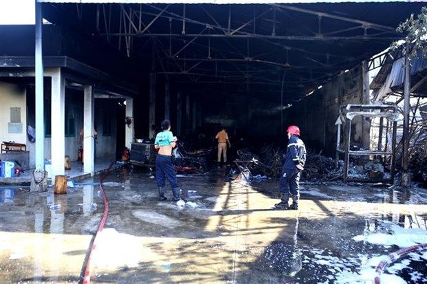 Lực lượng chức năng đã kịp thời bảo vệ, ngăn hỏa hoạn từ kho chứa xe tang vật và phương tiện vi phạm giao thông không bị cháy lan sang 3 xưởng gỗ, 1 dãy nhà trọ và các nhà dân xung quanh.