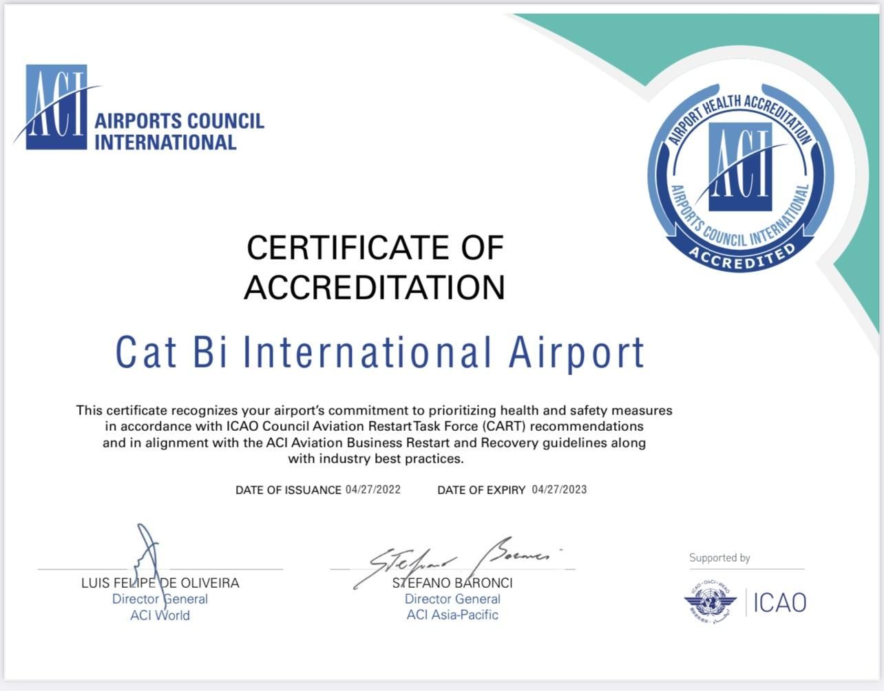 Ngày 19/5/2022, Cảng hàng không quốc tế Cát Bi – Cảng HKQT thứ 7 thuộc Tổng công ty Cảng HKVN ( ACV ) được Tổ chức Hội đồng sân bay quốc tế - Airports Council International (ACI) phê duyệt chứng nhận Airport Health Accreditation (AHA) có giá trị 12 tháng, kể từ ngày 27/04/2022 đến ngày 27/04/2023.