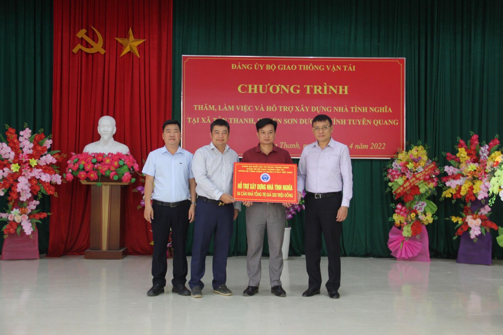 Sáng ngày 20/4/2022, tại UBND xã Tân Thanh, huyện Sơn Dương, tỉnh Tuyên Quang, Đảng ủy Tổng công ty Quản lý bay Việt Nam đã tham gia cùng đoàn công tác của Đảng ủy Bộ Giao thông vận tải tới thăm và tổ chức trao tiền hỗ trợ xây dựng nhà tình nghĩa cho các gia đình chính sách có hoàn cảnh khó khăn tại địa bàn xã.