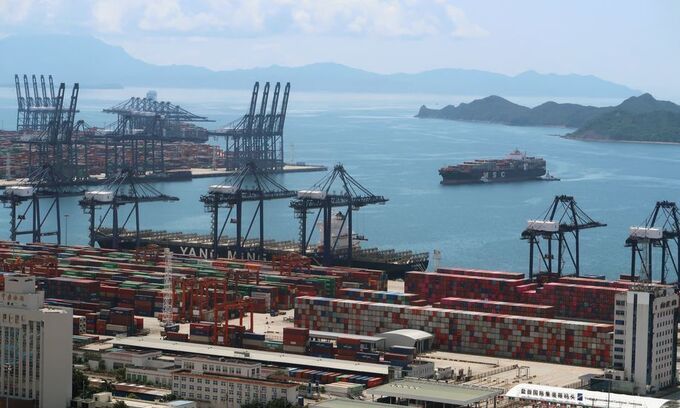 Lượng container xếp hàng chờ bên ngoài các cảng lớn của Trung Quốc đang ngày một dài thêm do dịch Covid-19 bùng phát tại nhiều trung tâm xuất khẩu, gây ra nguy cơ gián đoạn chuỗi cung ứng toàn cầu.