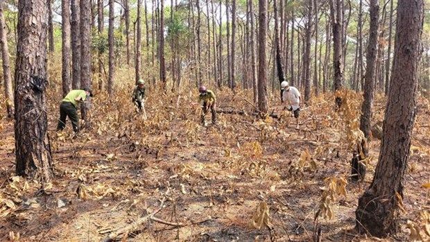 Nhóm hộ nhận khoán quản lý, bảo vệ rừng cùng với lực lượng chức năng thường xuyên tuần tra rừng, theo dõi và đốt trước có điều khiển thực bì để ngăn chặn cháy rừng từ xa.