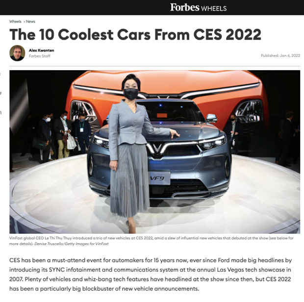 Forbes điểm tên VinFast trong top 10 xe tuyệt vời nhất tại CES 2022