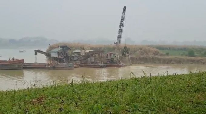 Phú Thọ: Tàu cuốc, tàu cẩu dây văng đua nhau “rút ruột” sông Lô