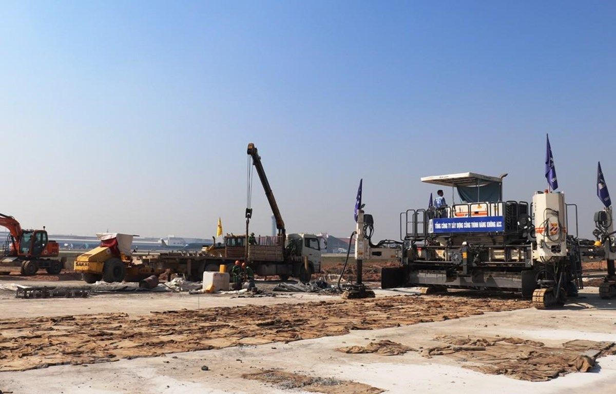 Đường cất hạ cánh 1A sân bay Nội Bài đang được các nhà thầu thúc tiến độ thi công để đưa vào khai thác trước Tết Nguyên đán Nhâm Dần năm 2022.