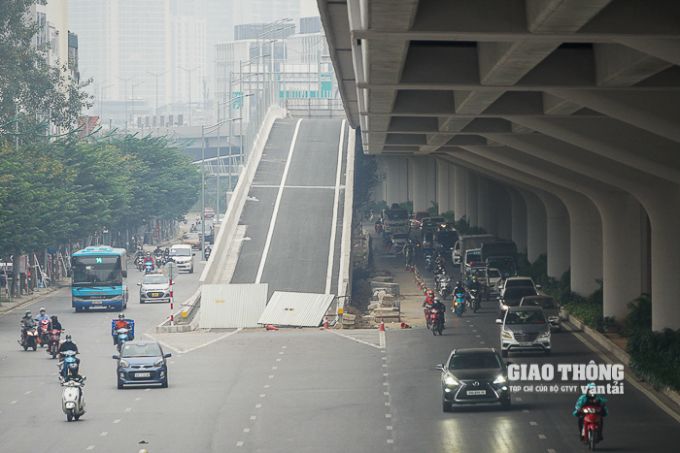 Tạp chí GTVT - Hơn 1 năm thông xe đường trên cao Mai Dịch - Nam Thăng Long, các hạng mục còn lại của tuyến đường đang rốt ráo hoàn thiện, chờ ngày vận hành.