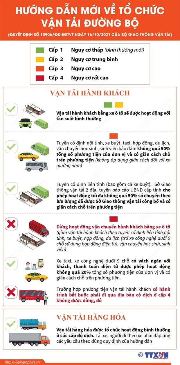 Bộ Giao thông Vận tải ban hành Quyết định số 10906/QĐ-BGTVT hướng dẫn tạm thời về tổ chức hoạt động vận tải nhằm đảm bảo thích ứng an toàn, linh hoạt, kiểm soát hiệu quả dịch COVID-19.