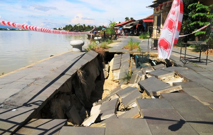 Quảng Nam: Kè bảo vệ phố cổ Hội An sụt lún, dân bất an