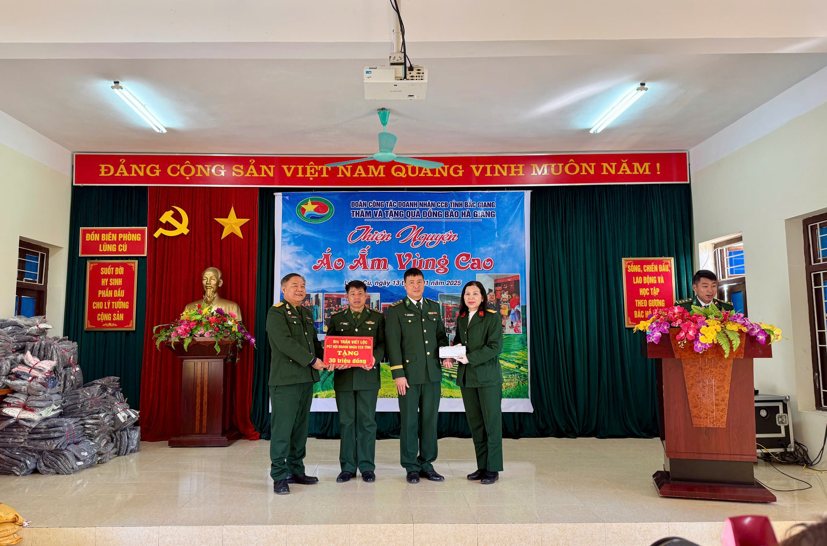 Hội Doanh nhân CCB tỉnh Bắc Giang thăm hỏi, trao quà động viên cho Đồn Biên phòng Lũng Cú.