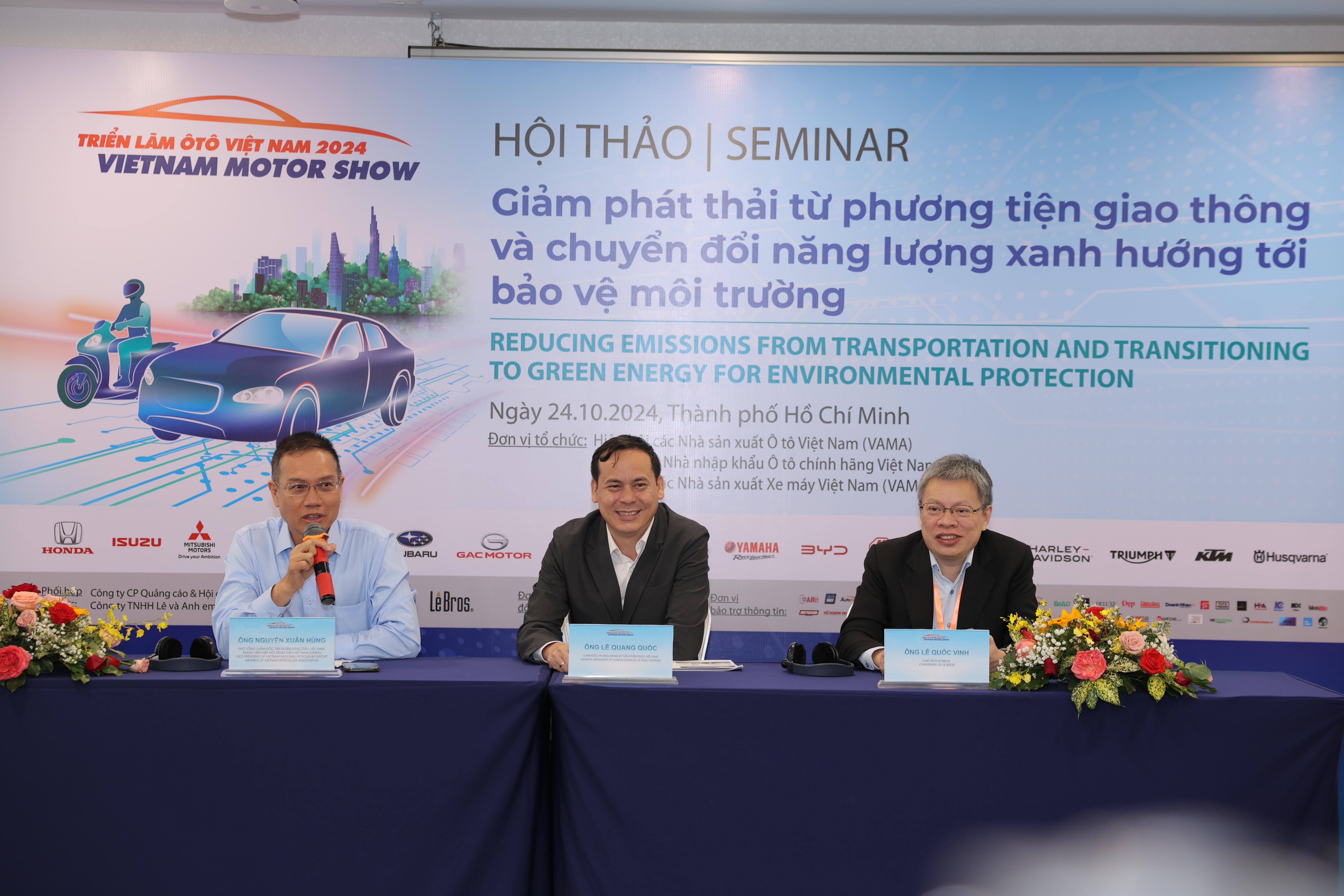 Ngày 24/10, tại TP. Hồ Chí Minh - Trong khuôn khổ ngày thứ hai của Triển lãm Ô tô & Xe máy Việt Nam - Vietnam Motor Show 2024 đã diễn ra hội thảo với chủ đề “Giảm phát thải từ phương tiện giao thông và chuyển đổi năng lượng xanh hướng tới bảo vệ môi trường”. Hội thảo tập trung vào việc thảo luận hai chủ đề chính: “Phương tiện sử dụng năng lượng xanh, sạch và thân thiện môi trường” và “Sử dụng đúng nhiên liệu Euro 5”.