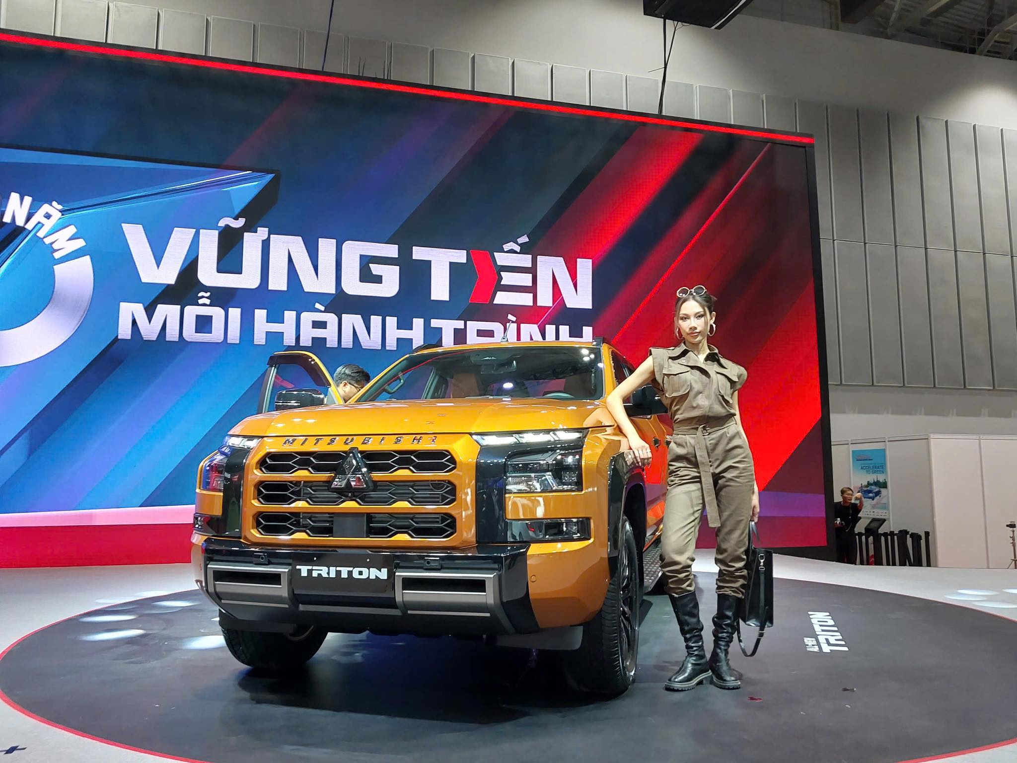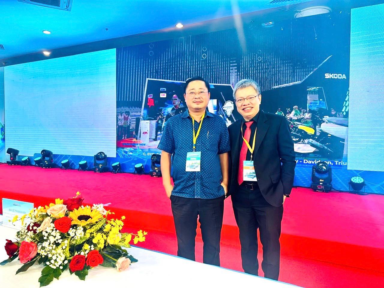 Nhà báo Trần Hữu Thọ và ông Quốc Vinh tại lễ khai mạc triển lãm Ô tô Việt Nam (VMS) 2024.