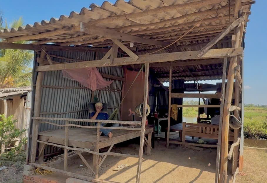 Ngôi nhà được anh Út xây tạm bợ không đủ tránh nắng che mưa.