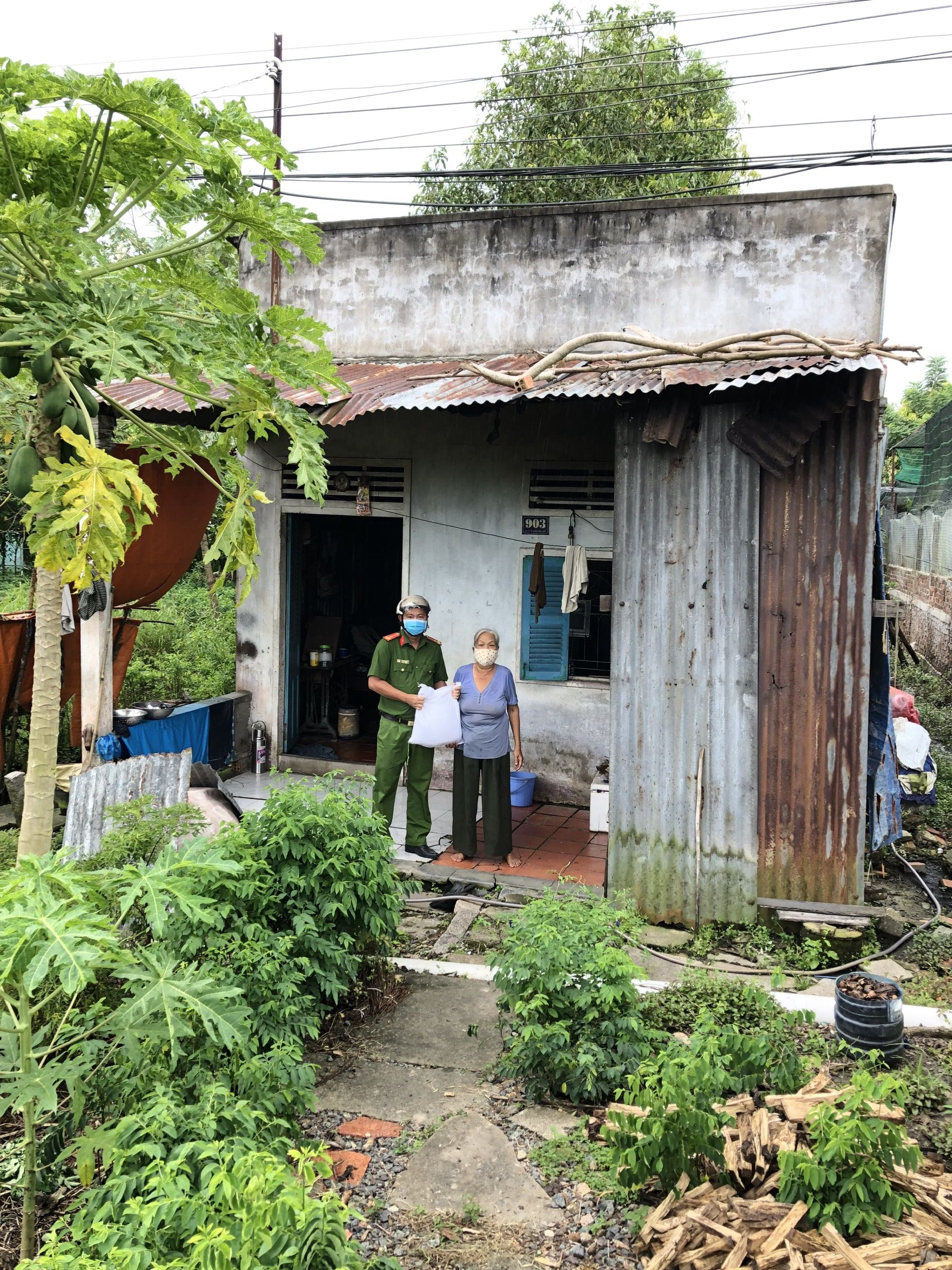 Công an quận Ô Môn đến thăm hỏi sức khỏe, động viên tinh thần và trao tặng gạo bà con nghèo gặp khó khăn trên địa bàn.