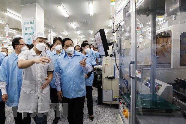 Chiều 3/9, Thủ tướng Phạm Minh Chính thăm nhà máy sản xuất, lắp ráp điện thoại và làm việc với Công ty TNHH Samsung Electronics Việt Nam Thái Nguyên tại Khu công nghiệp Yên Bình.