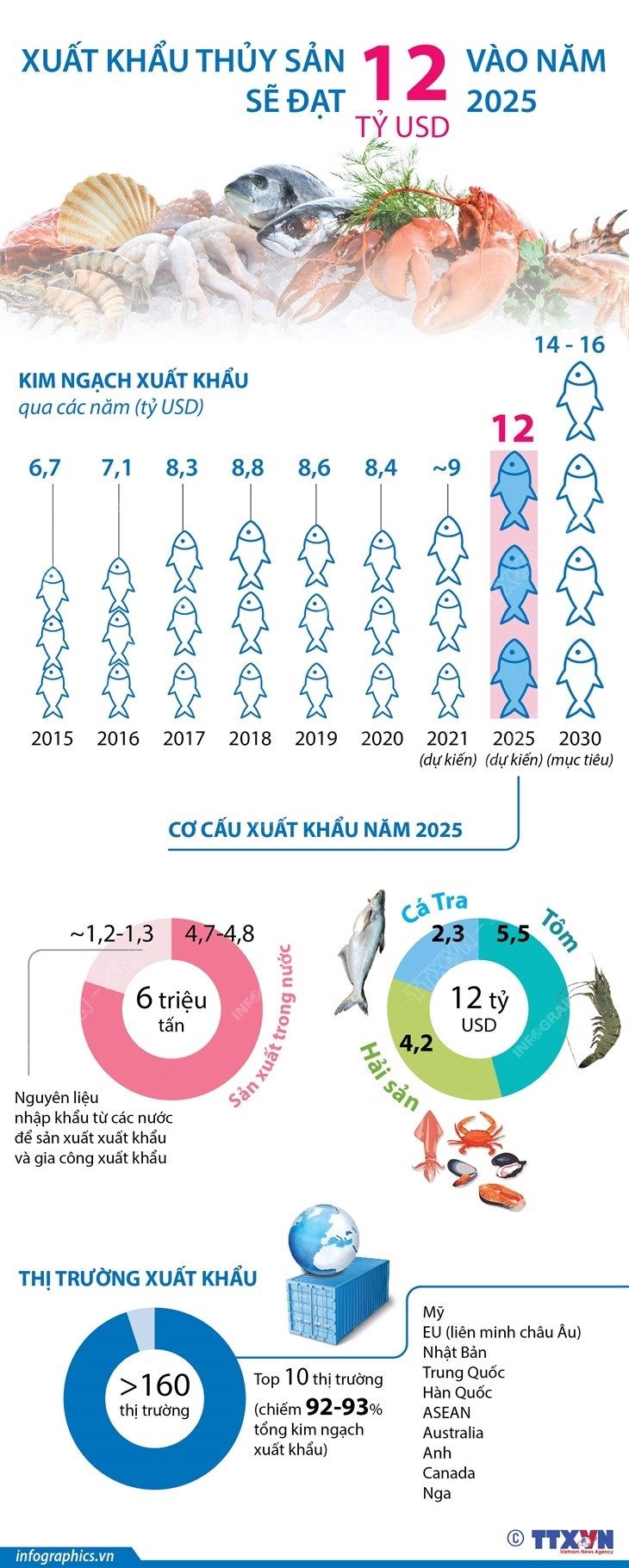 [Infographics] Xuất khẩu thủy sản sẽ đạt 12 tỷ USD vào năm 2025