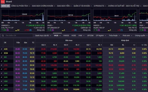 Kết thúc phiên giao dịch ngày 26/4, VN-Index tăng 5,95 điểm xuống 1.040,8 điểm, giá trị khối lượng giao dịch toàn thị trường đạt hơn 13.000 tỷ đồng.