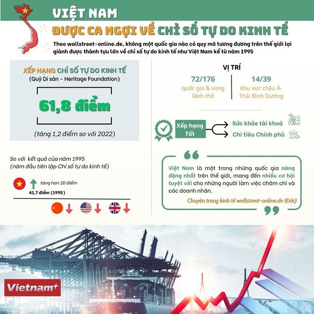 Theo wallstreet-online.de, không một quốc gia nào có quy mô tương đương trên thế giới lại giành được thành tựu lớn về chỉ số tự do kinh tế như Việt Nam kể từ năm 1995.